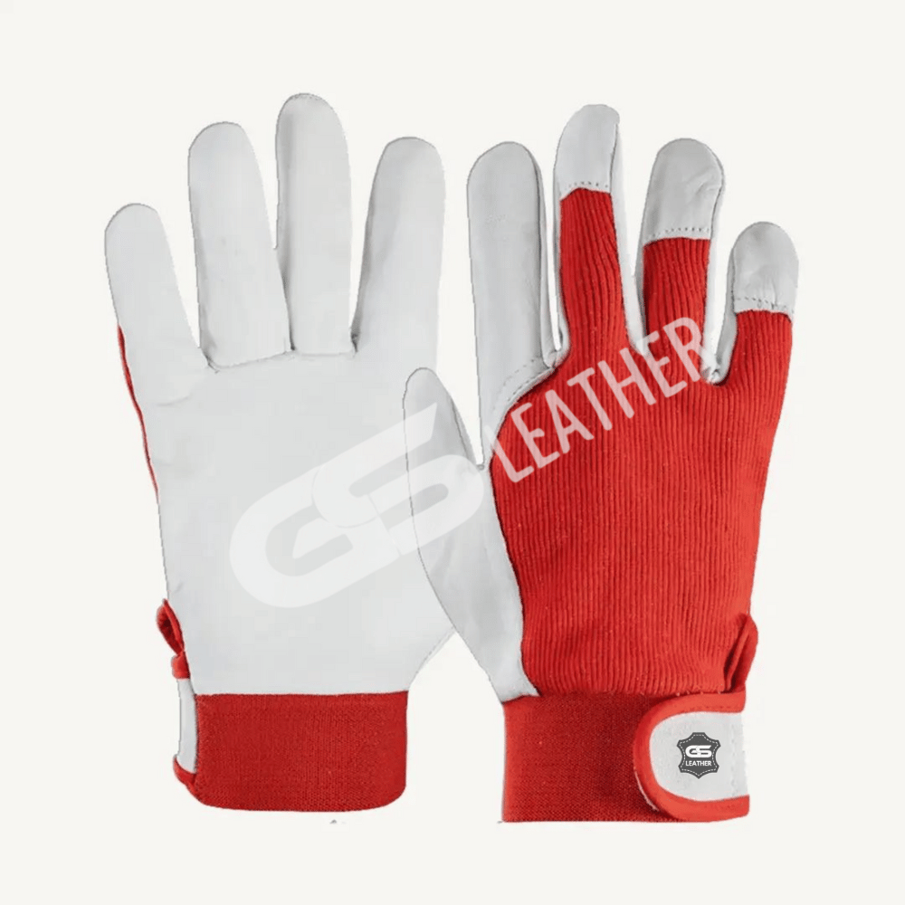 Goat/Sheep Leather Glove Red Azo free cotton fabric back 3 finger tips